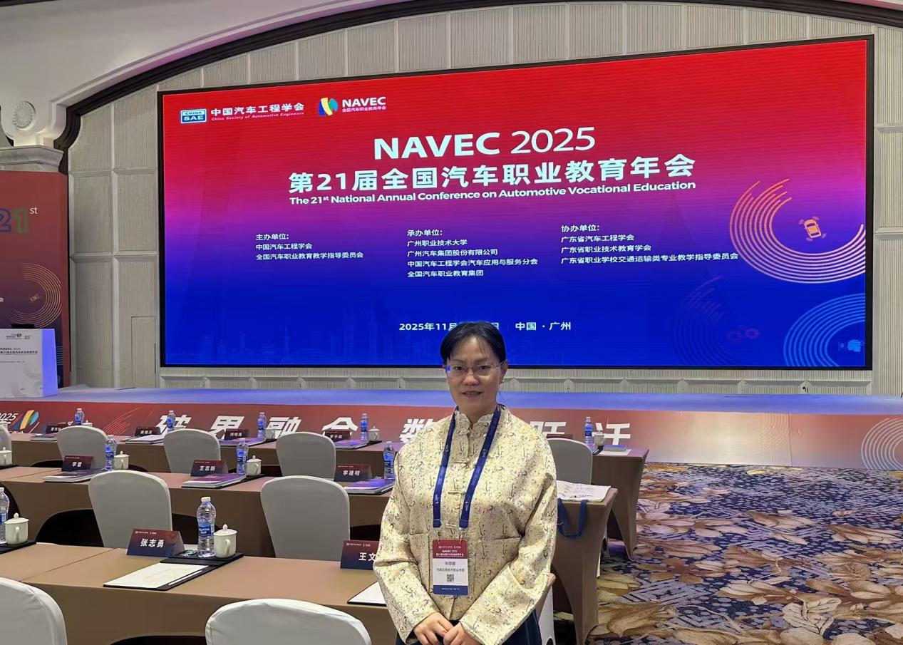2025年11月14日-16日,以“破界融合,数智跃迁”为主题的第二十一届全国汽车职业教育年会在广州隆重召开。我校世俱杯买球官网网站院长孙丽娜、副院长仵征参会,深度参与行业研讨,全方位学习前沿育人理念与产教融合经验。